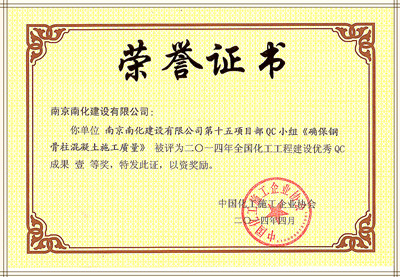 4月下旬,中国化工施工企业协会公布了2014年全国化工工程建设优秀质量管理小组成果评审结果,公司有5个QC小组活动成果榜上有名。其中,舟山项目部石油中转储运项目QC小组《改善边缘板对接焊缝的焊接质量》和第十五项目部QC小组《确保钢骨柱混凝土施工质量》获得一等奖,第六项目部DNCC新200kt/a己内酰胺项目QC小组《提高夹套管法兰端面平面度值合格率》和扬巴项目经理部QC小组《提高大型钢结构厂房围护结构密封性能》获得二等奖,南化项目部圆形煤仓QC小组《确保大直径圆形煤仓砼墙体的成型质量》获得三等奖。 马德康