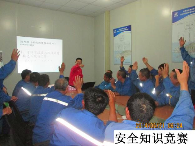 四、6月21日,安全保卫部组织各作业队伍人员代表40余人在项目部会议室开展了安全知识竞赛,气氛活跃,参与人员随后进行了安全经验交流分享和活动感想畅谈,并认为“此次活动对提升大家的安全意识起到了很大帮助”。