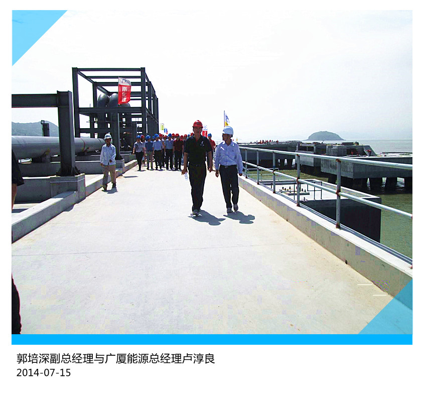 7月8日,浙江广厦集团董事局荣誉主席楼忠福、主席楼明带领集团200名工作人员亲临我公司承建的舟山黄泽山石油中转储运项目施工现场考察指导。公司副总经理郭培深陪同视察,并汇报了项目进展情况。楼主席及一行人对南化建的施工进度,施工安全,施工质量和现场的文明施工给予了高度评价。