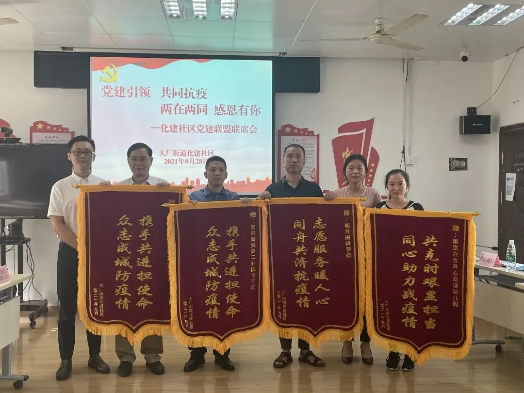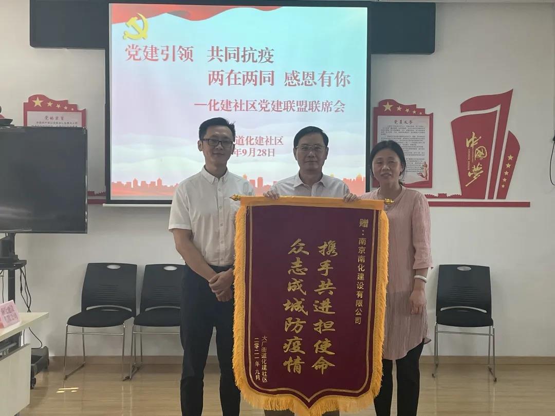 9月28日下午3点,大厂街道化建社区举办了“党建引领,共同抗疫,两在两同,感恩有你”党建联盟联席会,对在疫情期间联盟内各企业的积极作为表示感谢。大厂街道组织委员何安向公司授予锦旗、公司党委副书记付远俐代表公司出席会议。