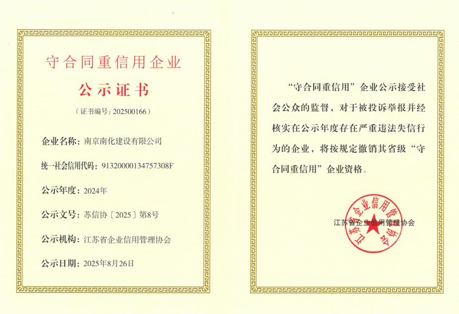 近日,江苏省企业信用管理协会公布2024年度江苏省“守合同重信用企业”名单,公司成功取得2024年度省级守合同重信用企业公示证书,实现荣誉蝉联。