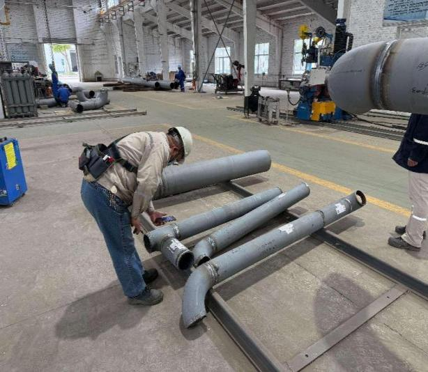 车间配备先进带锯床、端面坡口机、自动焊机等设备,实现管道下料、坡口加工、组对焊接的精密操控,误差严格可控,显著提升焊缝焊接质量。构建了完善的质量检查体系,覆盖从原材料进场验收、防腐、集中下料、组对、打底、焊接、焊缝外观检查、无损检测、焊后热处理、补漆打包直至发货出厂的全流程。每道环节均由专业人员严格把控,数据实时同步录入数字化系统,确保“一管一档、全程可追溯”。